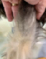 Skin: Look for signs of excessive dryness, redness, hot spots, wet patches, flakiness, or oiliness in the coat, as well as any unusual odours, which could indicate skin problems, fungal or bacterial infections.